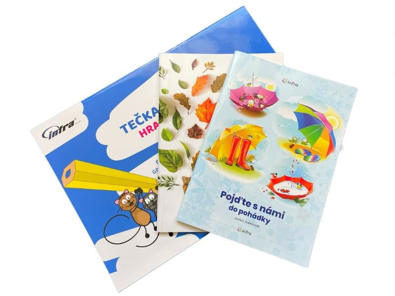 Sešity obsahují pohádky s úkoly, písničky, básničky a pracovní listy. Sešity jsou krásně barevně ilustrované, takže děti zaujmou hned na první pohled a jednotlivé úkoly je budou velmi bavit.