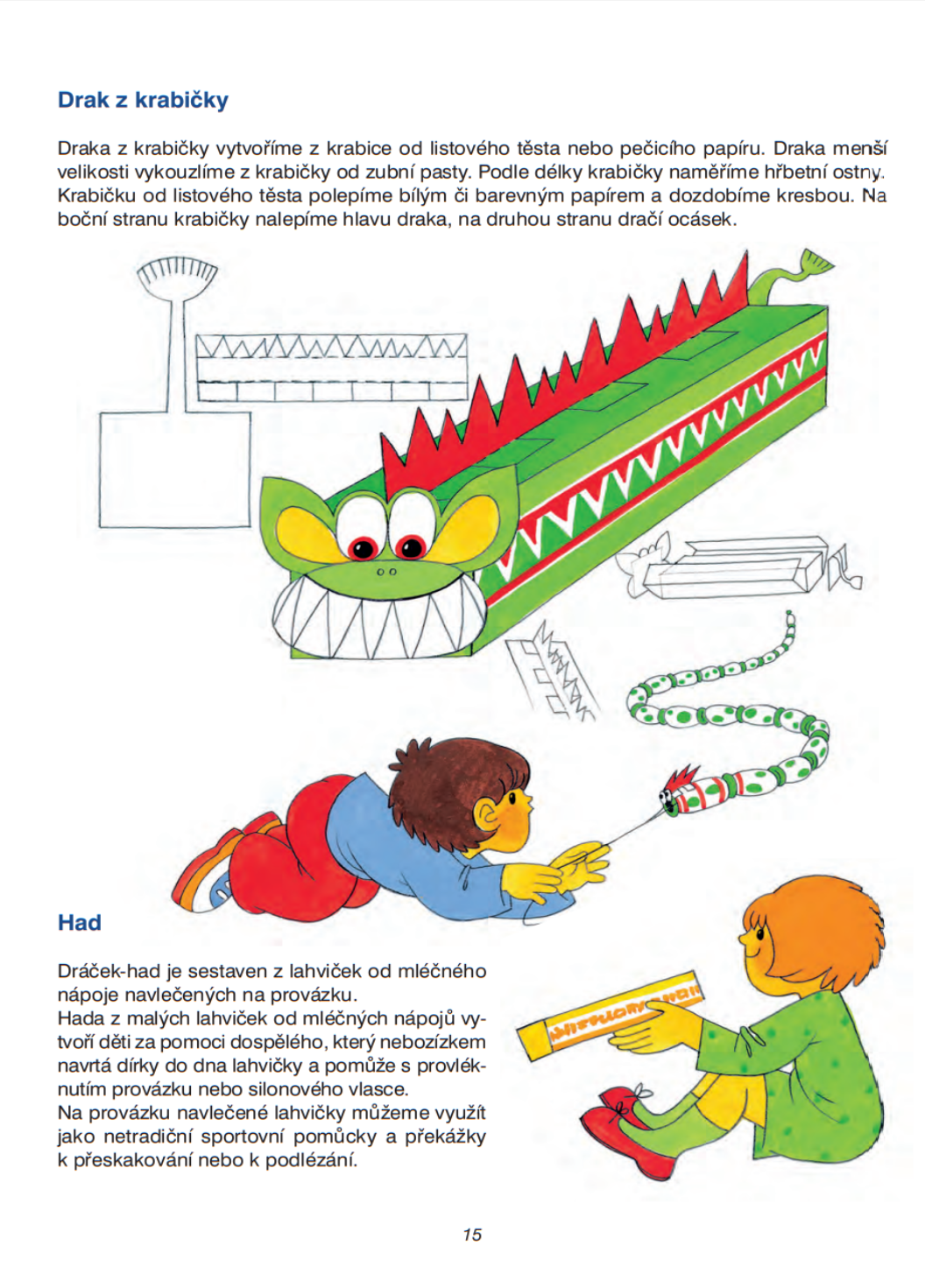 V knížce najdete velké množství námětů pro tvoření. Dále výtvarné, polytechnické, poznávací, rytmicko-hudební a pohybové hry. Vše s využitím kelímků od jogurtů, krabiček, lahviček od mléčných nápojů a jiných materiálů. S dětmi vytvoříte třeba sportovní náčiní, dárky, ozdoby a další předměty ke společným hrám.