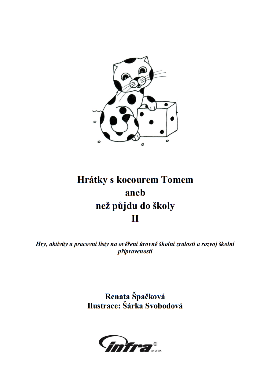 Druhý díl metodické publikace volně doplňuje první díl metodiky „Hrátky s kocourkem Tomem aneb než půjdu do školy“ a rozšiřuje možnosti, jak obohatit činnosti s dětmi o nové podněty. Souborem děti opět doprovází kocour Tom a jeho kočičí kamarádi Micka, Mourek a Líza.