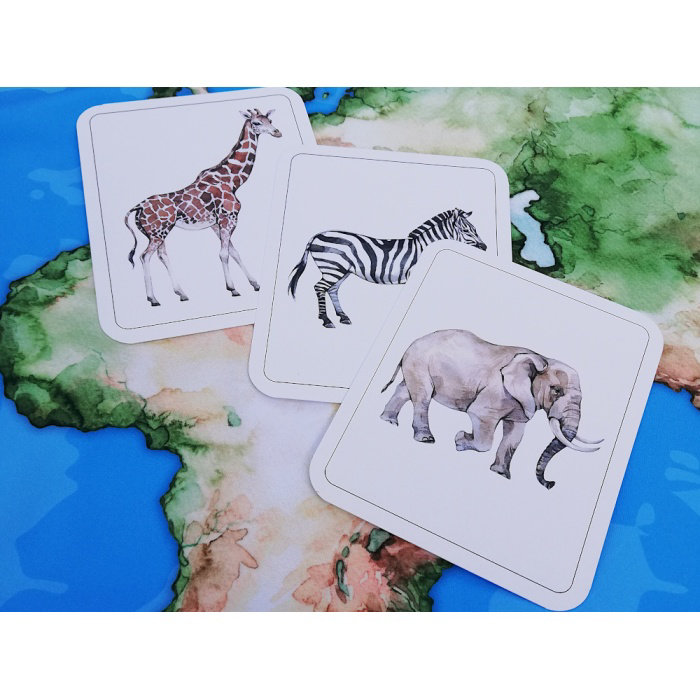 Krásně ručně kreslená mapa celého světa s velkým rozlišením, která je vhodná k výuce a ke hře. Je ideálním doplňkem ke kartám Zvířata celého světa. Mapa má opravdu velkou velikost, její rozměry jsou 85x54 cm (to je podobný rozměr jako formát A1). Nejlépe se skladuje srolovaná, pro tento účel je opatřena dvěma gumičkami.