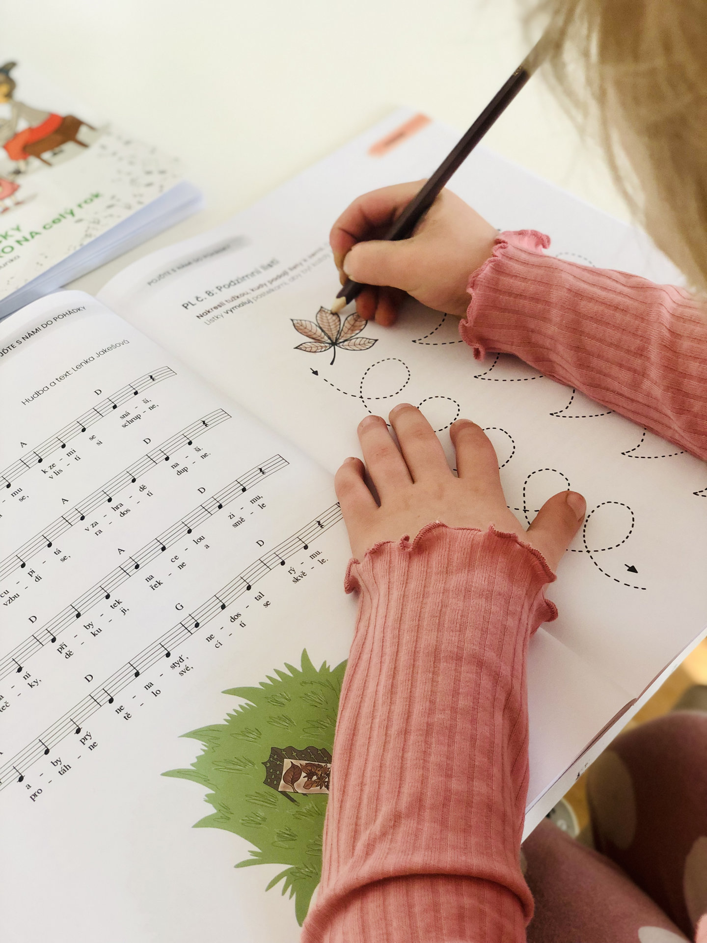 Po pohádce následuje básnička a písnička včetně notového zápisu. Recitací a zpěvem rozvíjíme u dítěte cit pro rytmus a rým. Nechybí ani pracovní listy, kterými procvičujeme grafomotoriku, matematické představy a zrakové vnímání.