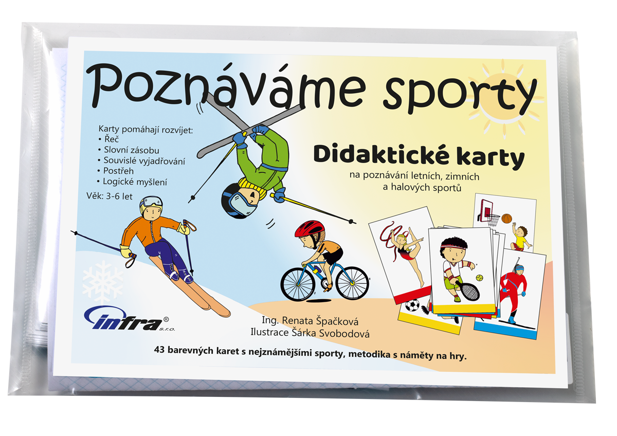43 barevných karet s nejznámějšími sporty, metodika s náměty na hry.