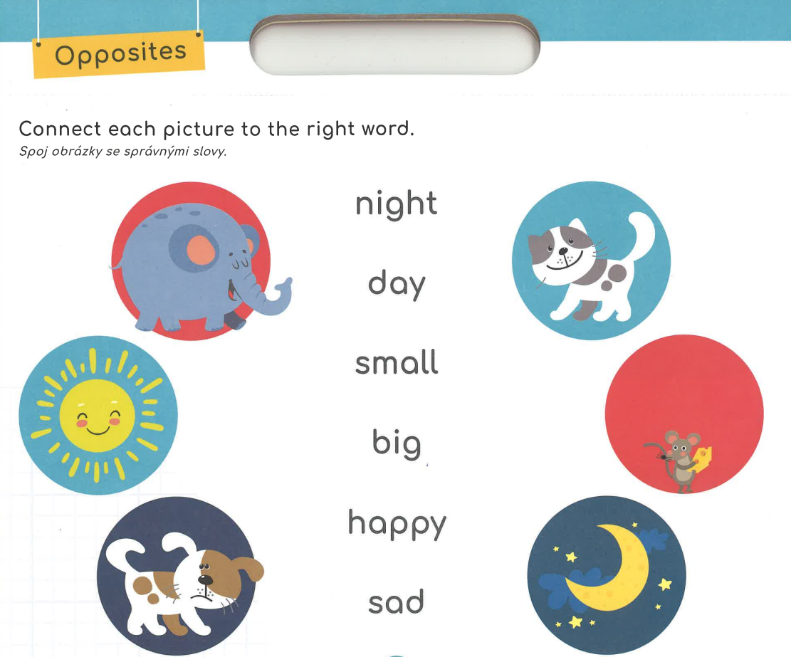 • Obsahuje témata: rodina, domov, zvířata, sport, škola, jidlo.