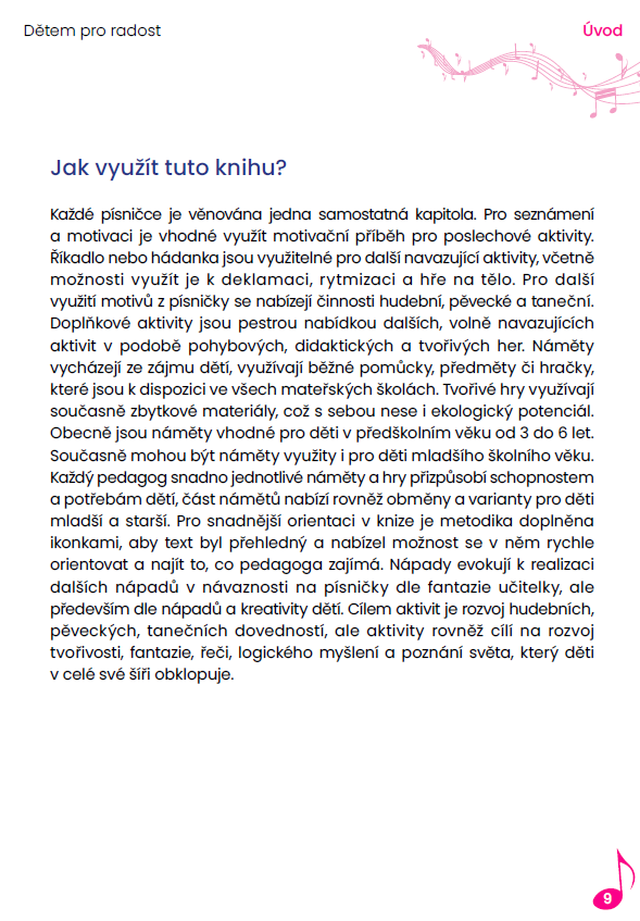 Tento zpěvník s metodikou je tak skvělou volbou pro rodiče, učitele i vychovatele, kteří chtějí rozvíjet dětskou kreativitu, jazykové dovednosti a nabízí dětem zábavnou a hravou formu sebevyjádření.