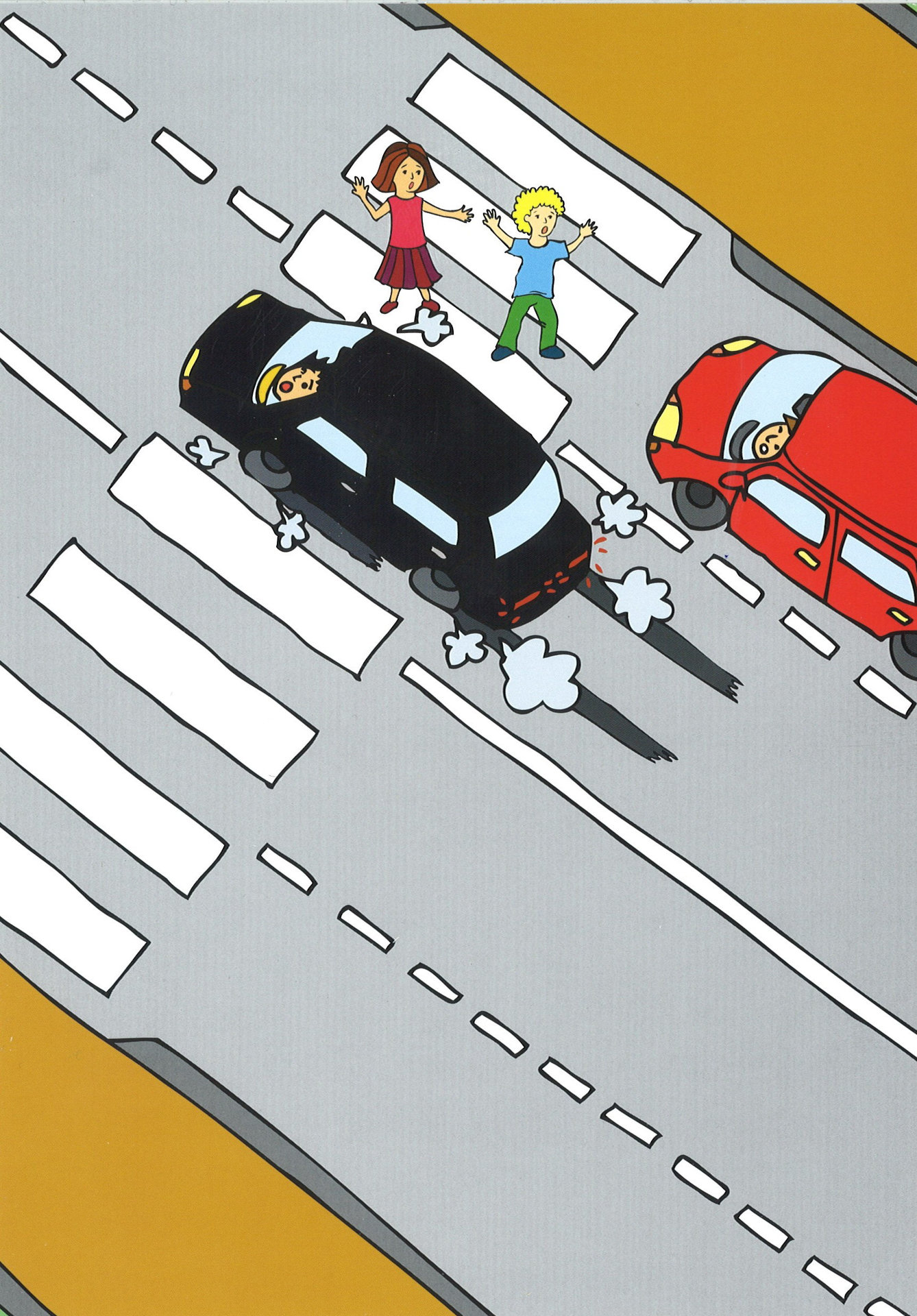 60 barevných obrazových karet formátu A5 obsahuje 15 příběhů nebezpečných situací na téma dopravní výchova. Děj jednotlivých situací (jednoho příběhu)je postupně rozkreslen na čtyřech kartách.