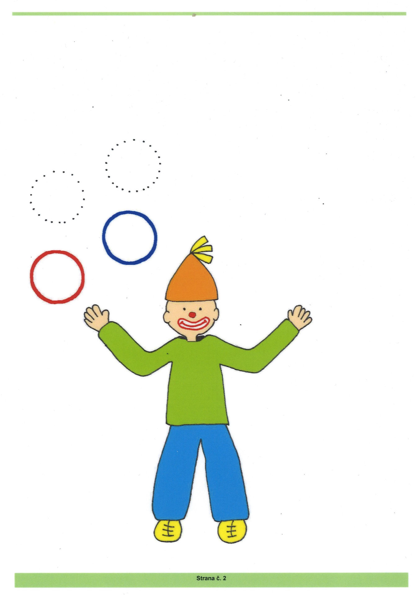 Stíratelný pracovní sešit s plastovou vazbou obsahuje 8 stíratelných stránek. Stránky jsou zalaminované do tvrdé folie, určené ke psaní a kreslení stíratelnými fixami. Tento sešit dává dětem první grafomotorické návyky zábavnou formou s klauny.