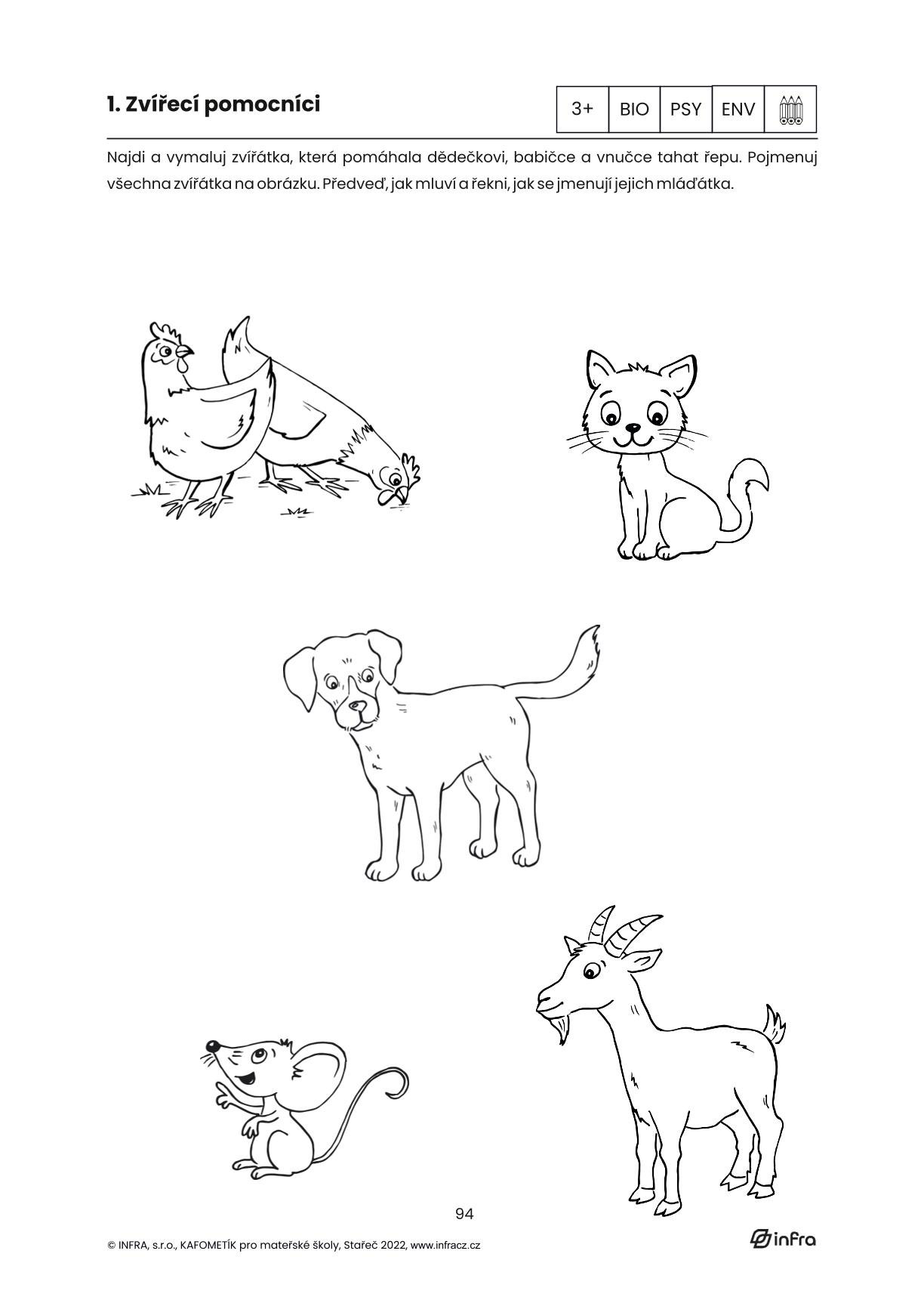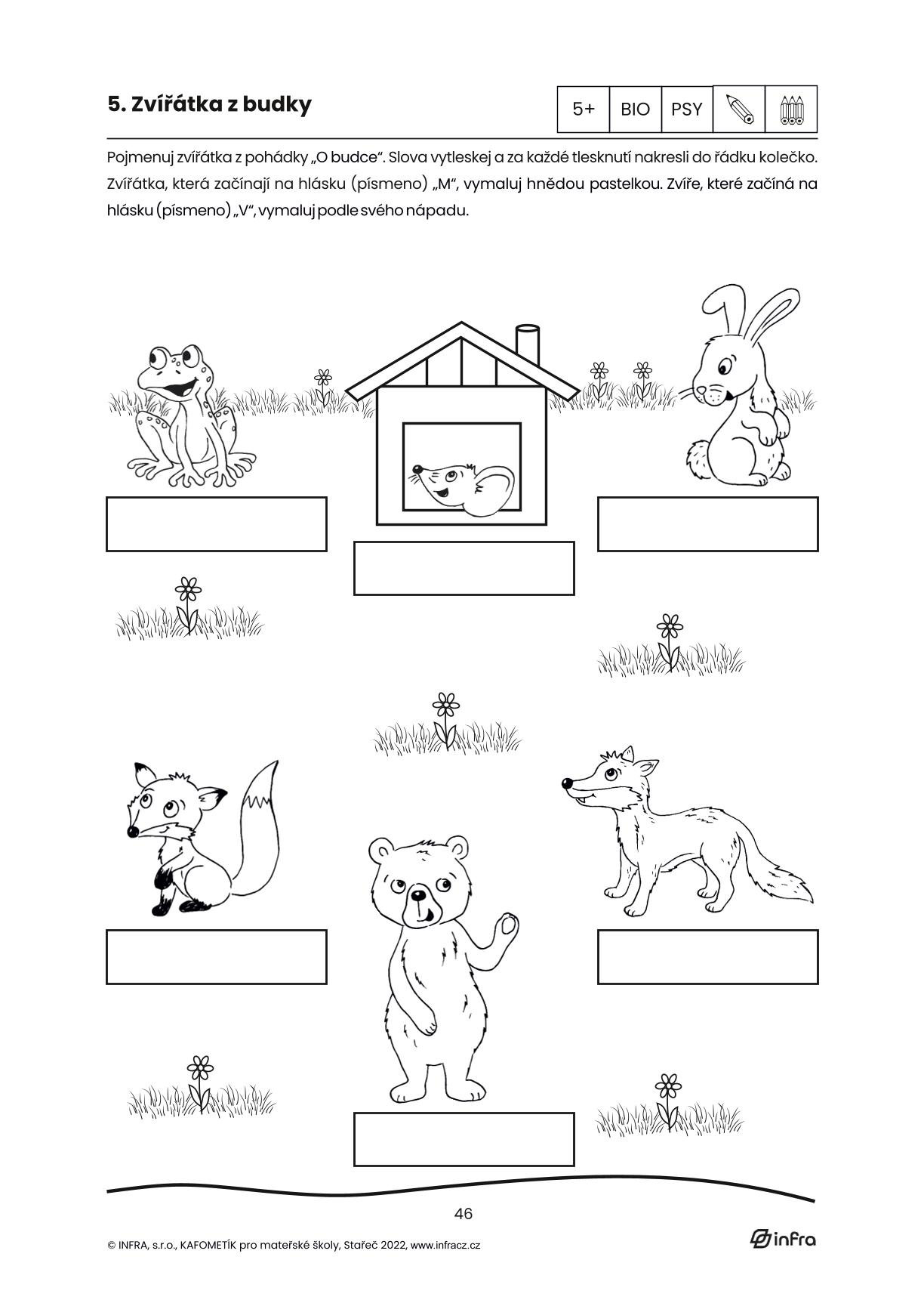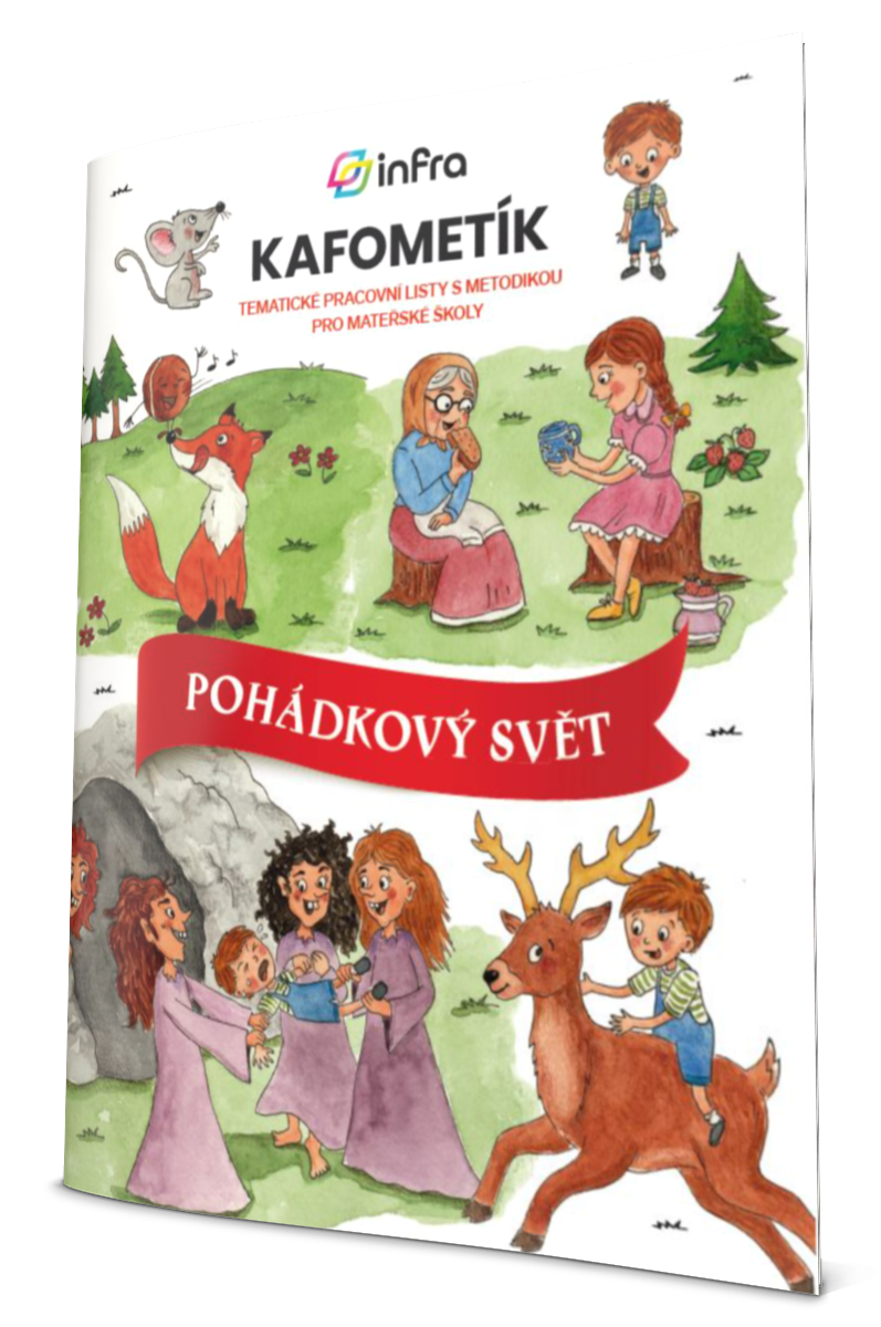 KAFOMETÍK jsme tentokrát rozdělili na kapitoly dle pohádek. Jednotlivé kapitoly začínají úvodní pohádkou, se kterou nadále pracujeme v metodice s doporučením výtvarných a pohybových aktivit. Každá kapitola obsahuje několik básniček a písniček inspirovaných pohádkou, dále malované čtení a 10 pracovních listů pro děti od 3-6 let. Jednotlivé pohádky tak tvoří tematický celek. Děti si pomocí pracovních listů procvičí grafomotorické prvky, čtenářskou i matematickou pregramotnost, zahrají si s kamarády různé hry, procvičí paměť, zahrají divadlo, mohou stříhat, malovat a vyplňovat úkoly inspirované pohádkami s krásnými kresbami paní Dagmar Chládkové.