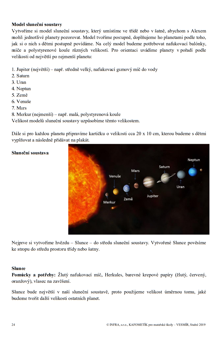 - metodické náměty pro činnosti a aktivity z oblasti poznávací, pohybové, výtvarné,