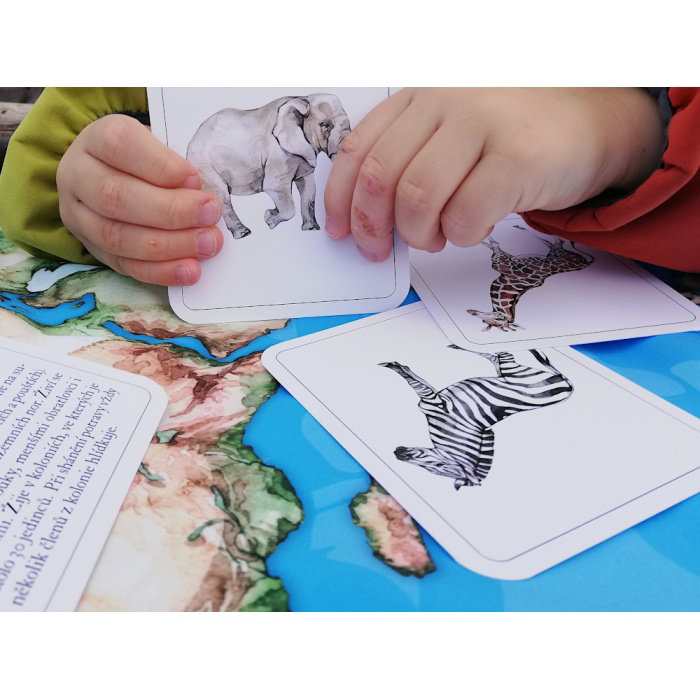 Krásně ručně kreslená mapa celého světa s velkým rozlišením, která je vhodná k výuce a ke hře. Je ideálním doplňkem ke kartám Zvířata celého světa. Mapa má opravdu velkou velikost, její rozměry jsou 85x54 cm (to je podobný rozměr jako formát A1). Nejlépe se skladuje srolovaná, pro tento účel je opatřena dvěma gumičkami.