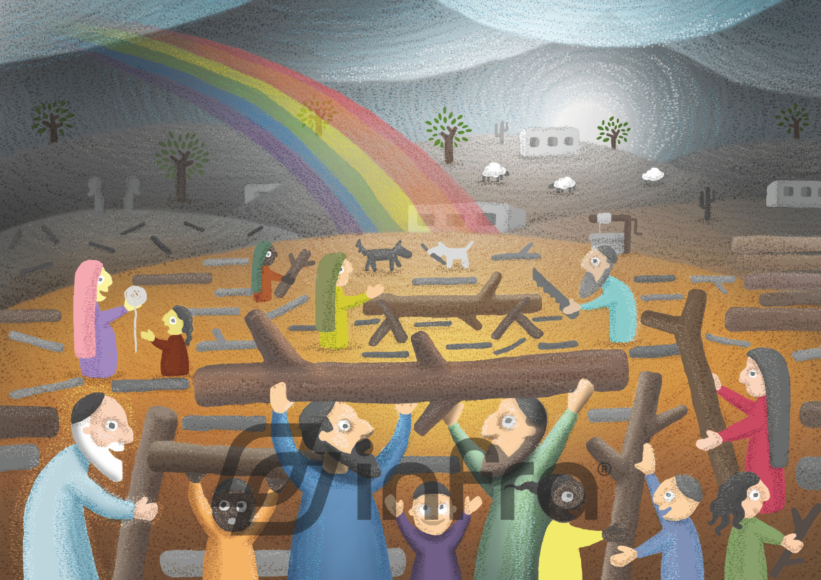 Obrazová knížka příběhu o Noemově upravena do pohádkového kufříku ve formátu A3. Příběh je na 10 obrazech. Na zadní straně každého obrazu najdete text příběhu a příklady otázek, které můžete dětem v průběhu vyprávění pokládat.