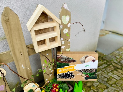 Hmyzí hotelKrabička s kostrou hmyzího hotelu ze dřeva a manuálem obsahujícím informace, jak hotel sestavit, a jaké materiály použít jako výplň hmyzího hotelu, aby přilákaly co nejvíce hmyzích obyvatel.