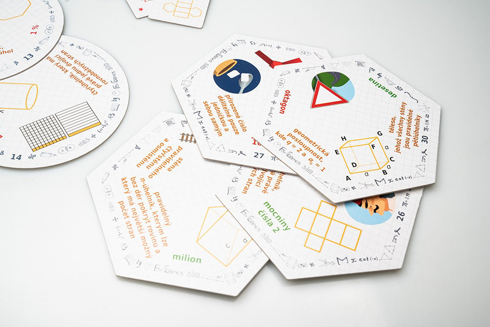 Každé balení obsahuje čtvercové, kruhové a šestiúhelníkové karty, které lze mezi sebou kombinovat. Aktivity, které lze s těmito kartami hrát, jsou založeny na vyhledávání různých vyjádření matematických pojmů – název, definice, konkrétní příklad, vzoreček, graf atd.