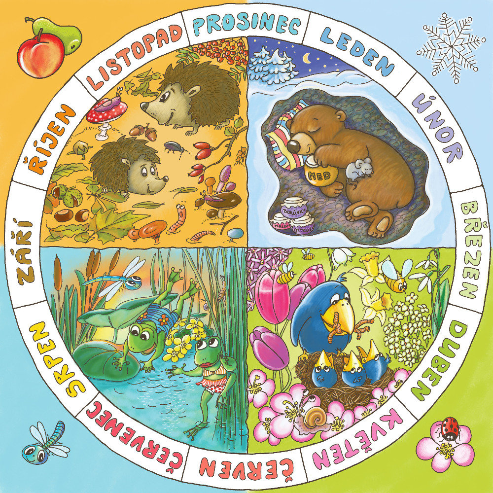 - nástěnný kalendář s ručičkou, měsíci a ročními obdobími