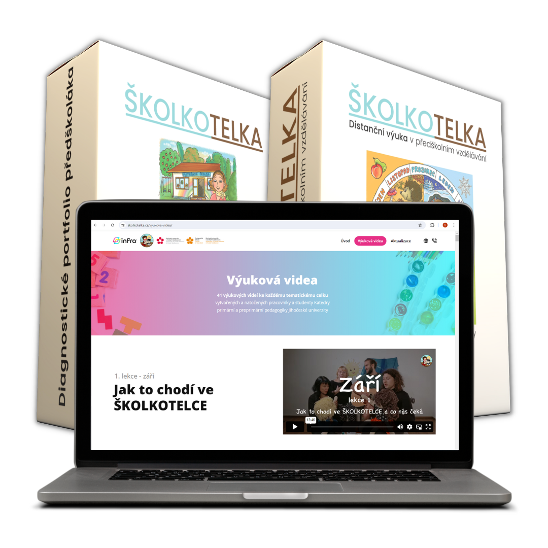 ŠKOLKOTELKA je komplexní soubor metodických materiálů a zásobník aktivit a témat na celý rok pro vzdělávání předškolních dětí. Obsahuje 41 tematických celků a výukových videí na každý týden mimo prázdnin. Vznikl ve spolupráci s předními oborníky z Jihočeské univerzity v Českých Budějovicích.