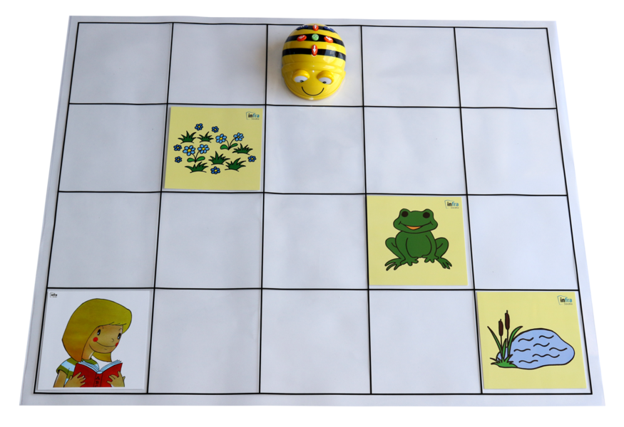Dvouvrstvá PVC podložka k práci se včelkou Bee-Bot, do které si můžete vložit své vlastní obrázky - s čtvercovou sítí 5 x 4 políček o velikosti 15 x 15 cm na spodní straně. Výhodou podložky je, že má dvě vrstvy, které jsou na jednom boku svařené. Obrázky, které do ní vložíte, se nebudou při pohybu včelky posouvat. Je vyrobena ze zdravotně nezávadného materiálu. Rozměr: 78x63 cm.